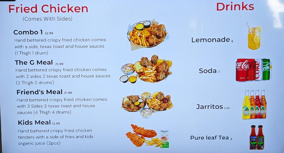 Welcome to Chicken G’s, a Mountain View favorite known for its crispy fried chicken, flavorful comfort meals, and fast, friendly service. If you’re craving deliciously seasoned chicken, juicy burgers, hot wings, or classic American sides, our Chicken G’s Restaurant menu has something for everyone. Whether you're dining in, grabbing takeout, or ordering delivery, we bring you fresh, hot, and satisfying meals made with care. Explore our menu to discover why Chicken G’s is one of the most-loved fast food spots in Mountain View, CA.